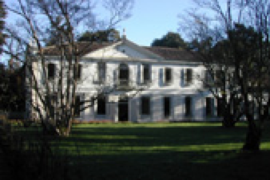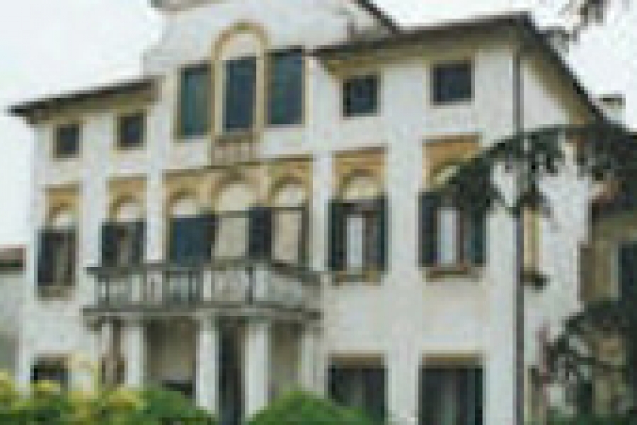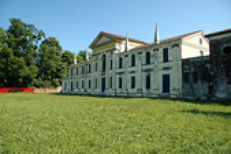 La Villa Ferretti-Angeli fu costruita nel 1608 su progetto di Vincenzo Scamozzi. La parte esterna del complesso immobiliare non appare molto diversa da come doveva essere nel ’700: la facciata scandita dall’ordine gigante ionico, il pianterreno caratterizzato da un bugnato rustico, i pinnacoli dei camini lungo il prospetto nord. Si sono conservati i cancelli originari, con i pilastri cilindrici che portano anfore del primo Seicento, nel timpano a sud, gli angeli reggiscudo sono ancora quelli scolpiti, si presume, da Francesco Albanese contemporaneo allo Scamozzi. E’ del tutto scomparso il giardino all’italiana con le sue aiuole, che compare ancora nella stampa della raccolta Voikamer.
